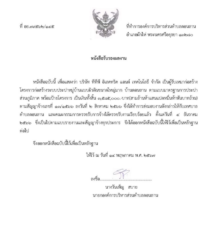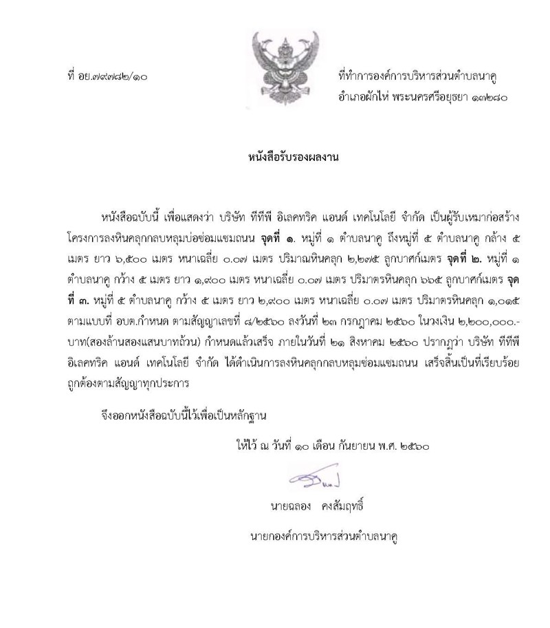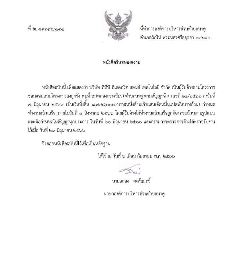 | 8 | 2566 | โครงการซ่อมแซมถนนโครงการลงลูกรัง | 1,978,000 | Baht |