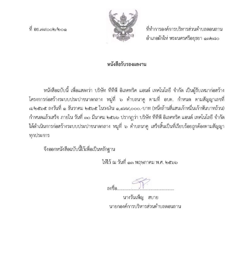 | 7 | 2566 | โครงการก่อสร้างระบบประปาขนาดกลาง | 1,499,000 | Baht |